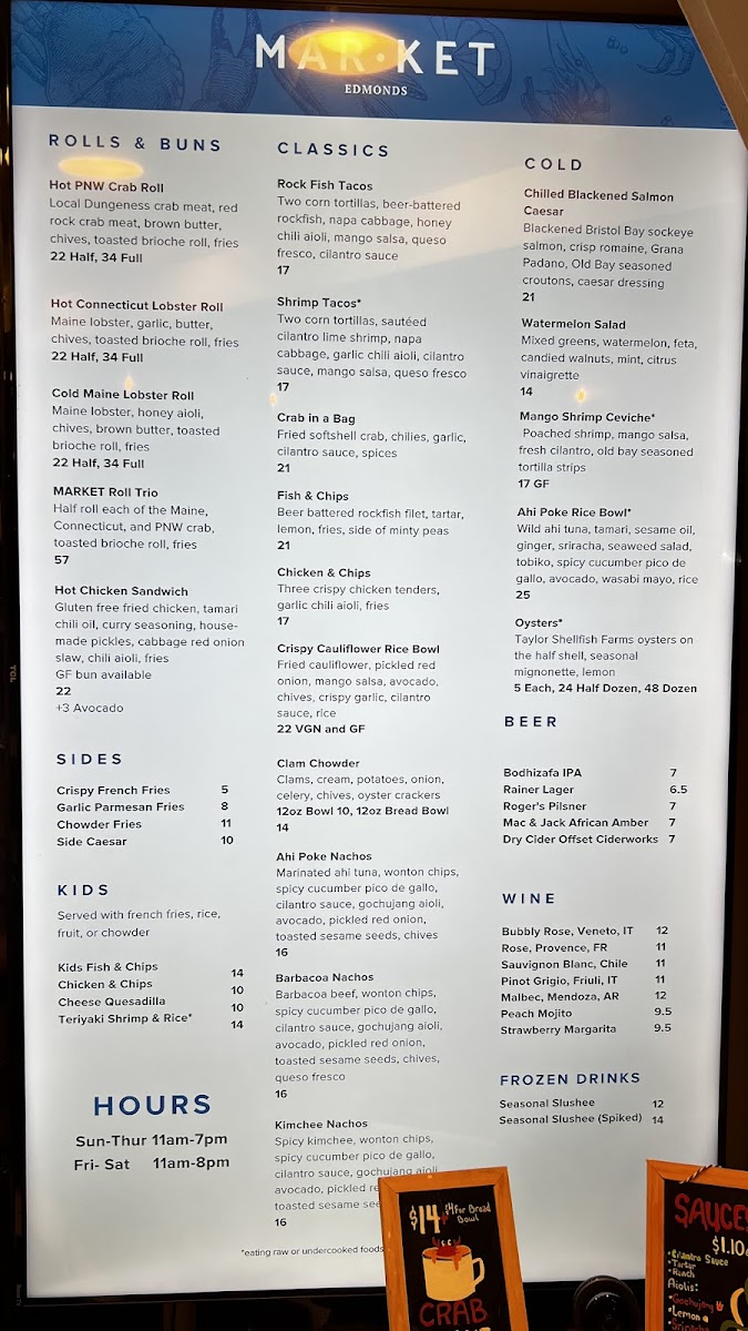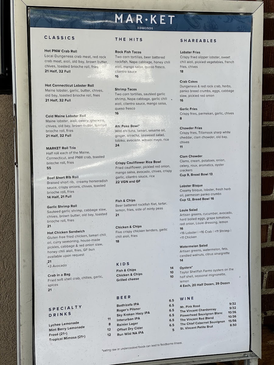 If you’re looking to treat yourself, MARKET Seafood Eatery is the perfect place to indulge. Whether you’re a local or just passing through Edmonds, this seafood haven promises to leave you with a full belly and a smile.